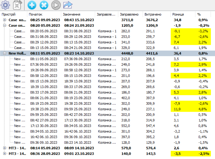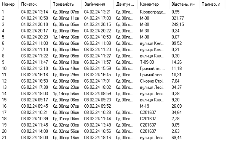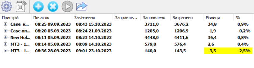 Облік витраченого палива (фактична витрата, витрата на 100 км, витрата на мотогодину, витрата в простоях).